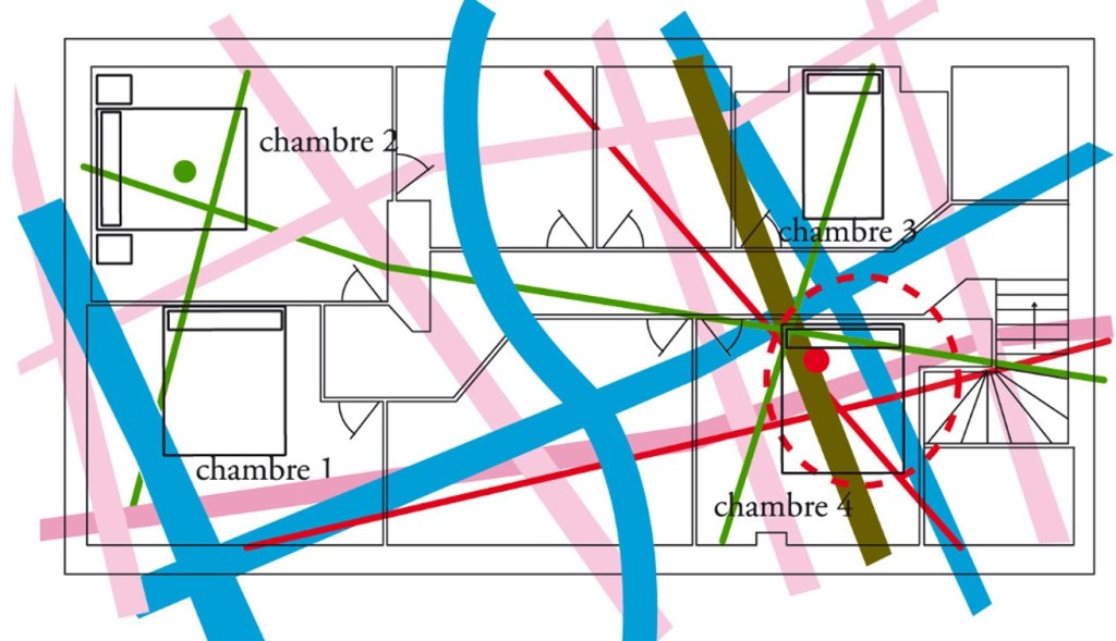 J’ai alors parlé de tout cela à Pascale qui nous connait bien et elle a tout de suite eu mal au ventre et m’a expliqué son travail de « nettoyage énergétique » des lieux car, même si j’étais ouverte à tout cela, je ne connaissais pas la géobiologie. Pascale m’a donc demandé de lui envoyer un plan de mon appartement pour pouvoir l’étudier et voir si il y avait des nuisances énergétiques. C’était bien le cas et uniquement dans la chambre de mon fils.